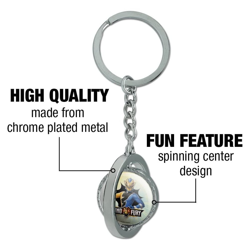 About The Product: keychain will help you make a statement with this truly unique keychain! The center circle with the cool design shown spins completely around. The keychain is chrome plated metal and double-sided with the resin-topped design. The round part of the keychain is approximately 1.3" (3.3cm) in diameter. Sold individually.