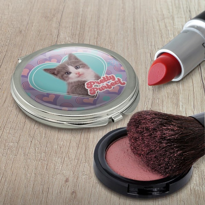 GRAPHICS & MORE Pretty Purfect Kitty Heart Compact Travel Purse Handbag Makeup Mirror