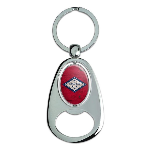 GRAPHICS & MORE Rustic Arkansas State Flag Distressed USA Keychain Chrome Metal Spinning Oval Bottle Opener