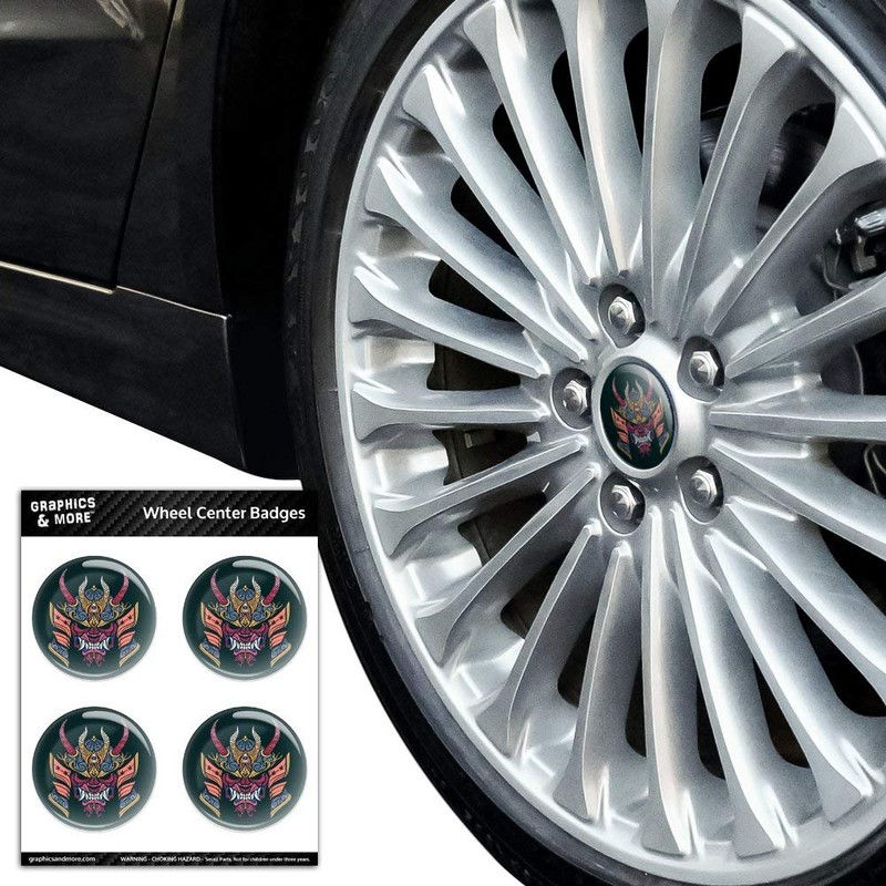 GRAPHICS & MORE Samurai Warrior Japanese Demon Oni Mask Tire Wheel Center Cap Resin-Topped Badges Stickers