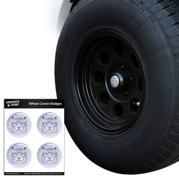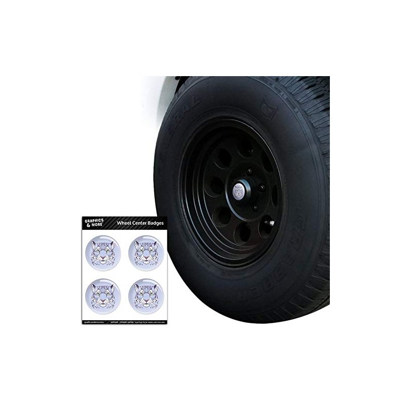 GRAPHICS & MORE Spotted Snow Leopard Face Tire Wheel Center Cap Resin-Topped Badges Stickers