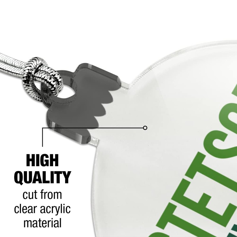 - DURABLE CONSTRUCTION: Crafted from high quality clear acrylic, our ornaments are printed on one side with the festive design shown. Unlike glass bulbs, our ornaments are shatterproof, making them perfect for families with kids or pets. Hanging cord included. Dimensions 3.0" (7.6 cm) x 3.6" (9.1 cm).