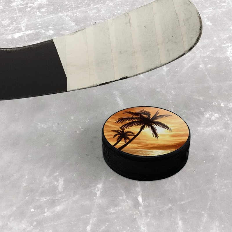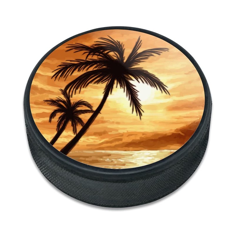 GRAPHICS & MORE Sunset on Tropical Beach with Palm Trees Hawaii Orange Ice Hockey Puck