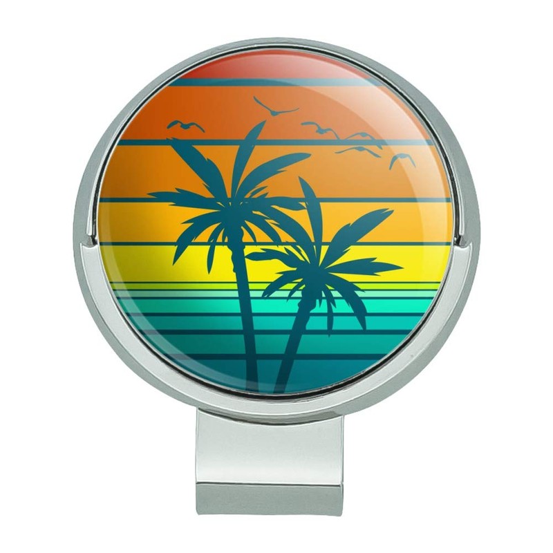 GRAPHICS & MORE Sunset with Palm Trees Graphic Golf Hat Clip with Magnetic Ball Marker
