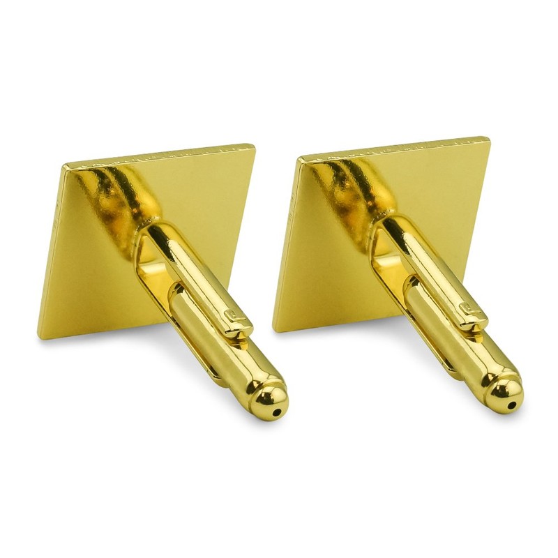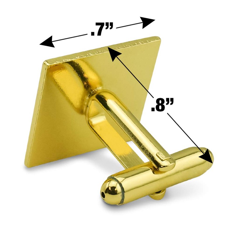 - CLASSIC & ELEGANT: Delight the dapper dresser in your life with this unique novelty cufflink set. Boasting a polished gold-tone finish, glossy resin-topped graphic, and easy-to-use bullet back closure, these square cuff links are the perfect way to add some flair to your daily wear.