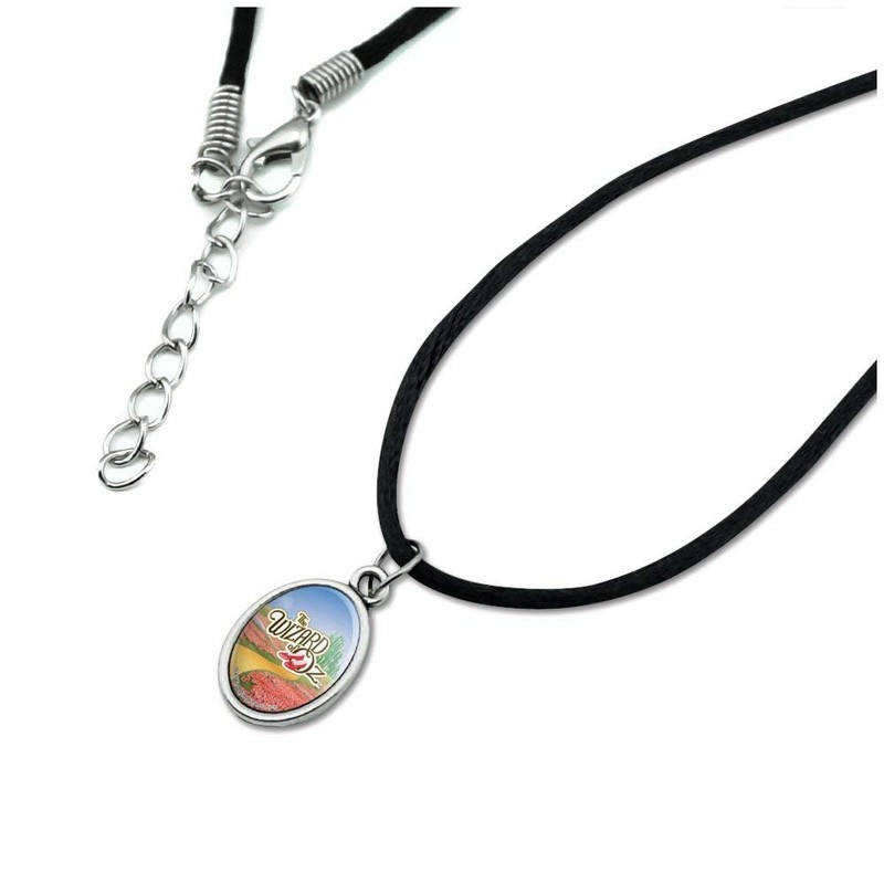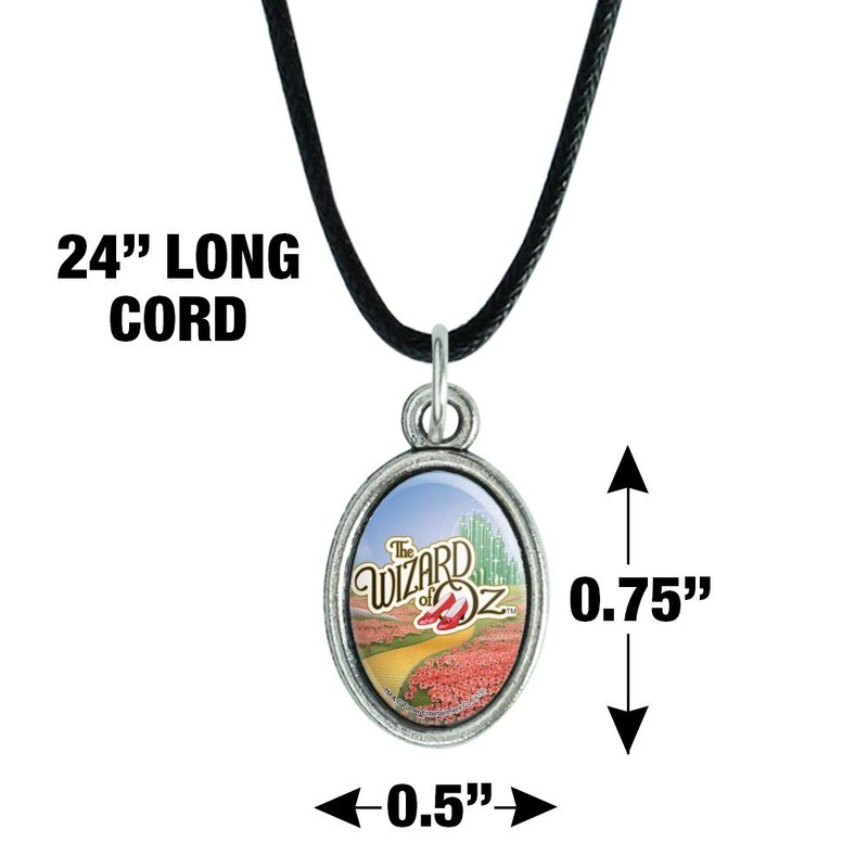 GRAPHICS & MORE The Wizard of Oz Ruby Slippers Logo Antiqued Oval Charm Pendant with Black Satin Cord