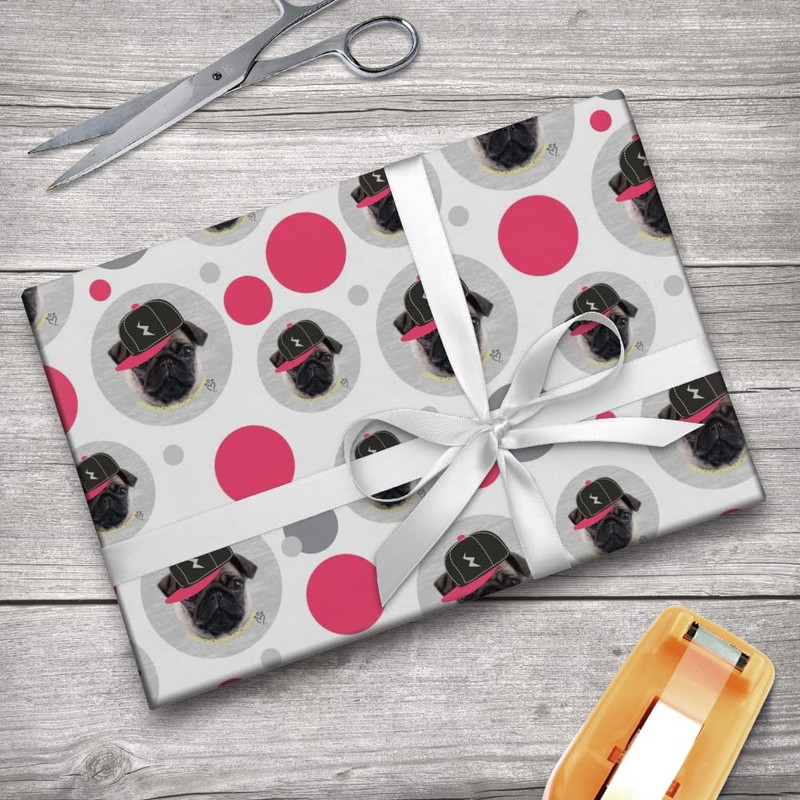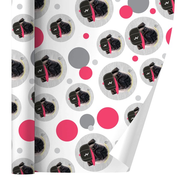 GRAPHICS & MORE Tough Pug Puppy Dog in Cap Hat Gift Wrap Wrapping Paper Roll