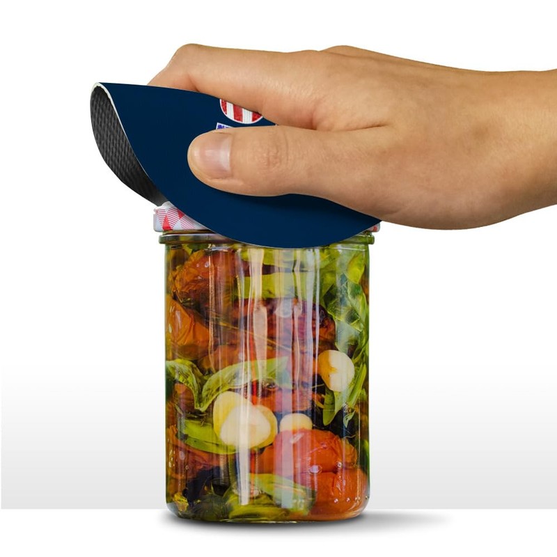 - MULTIPURPOSE LID OPENER: Stubborn jars are a thing of the past with our handy-dandy non-slip lid opener. Face down stuck pickle jars and cemented jelly jugs with our kitchen accessory.