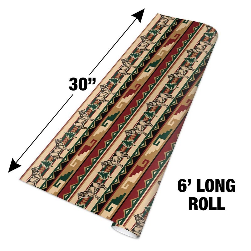 GRAPHICS & MORE Wolf Wolves Southwestern Native American Red Green Pattern Gift Wrap Wrapping Paper Rolls