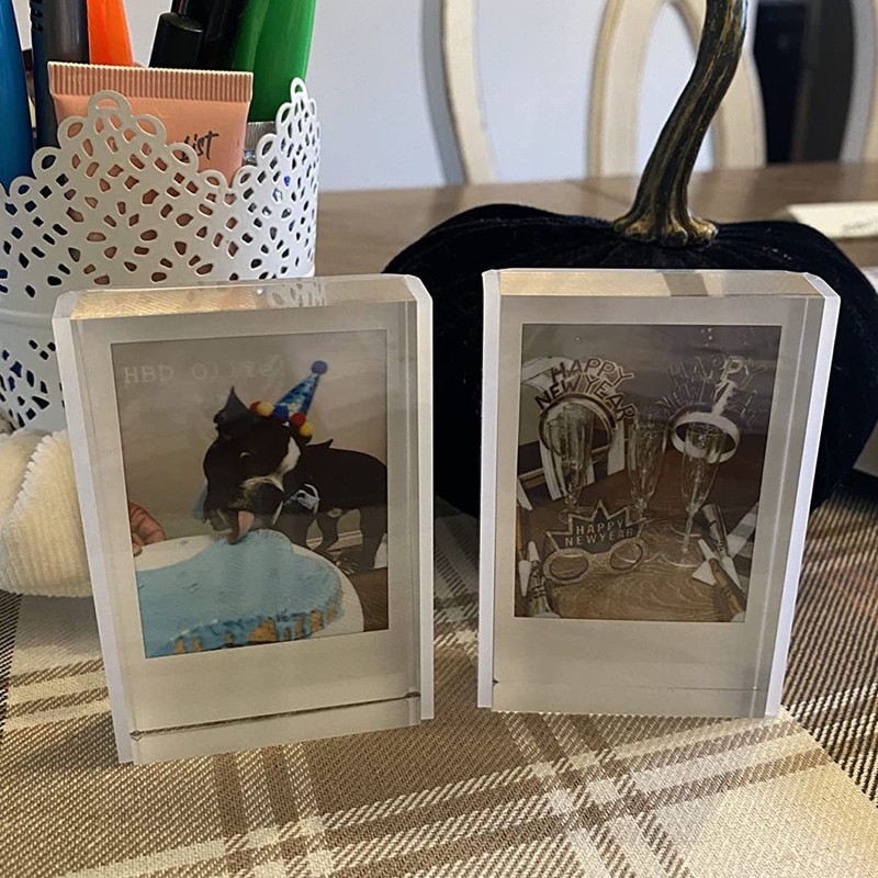 - ❤ MADE OF HIGH QUALITY & STRONG ACRYLIC -- Polaroid picture frames are made of high quality crystal clear acrylic, high durablity makes it shatterproof. Transparent glass protect your cherished pictures against dust scratches and moisture