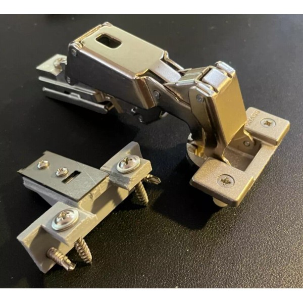 This listing is for ONE (1) NEW CONDITION Grass 3909, 2625110 Snap-On/Clip-On Hinge, a discontinued and hard-to-find model with a die-cast zinc cup, PLUS a replica 048 baseplate for easy installation. As pictured. Ideal for replacing an existing hinge or for a new installation requiring full overlay and self-closing action.