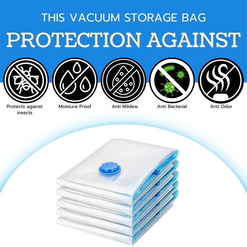 - QUALITY: Unlike other vacuum storage bags, these bags are designed with sturdy high-quality materials to make them last much longer. The bags are made of very thick plastic to ensure they do not break or tear easily. These are also anti-microbial meaning NO MOLD, MILDEW, DUST OR BACTERIA. This makes the bags ideal for long term air tight storage.