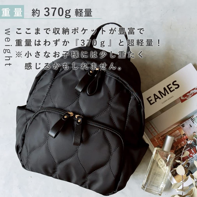 - (Matching with Mom) Rucksack, Kids, Girls, Fashionable, Parent-Child Matching Coordination, Water Repellent, High Density Nylon, Quilting, Lightweight, A4, 8 Pockets, Large Capacity, Rucksack, Link Coordination, Lightweight, Children, Name Card Holder