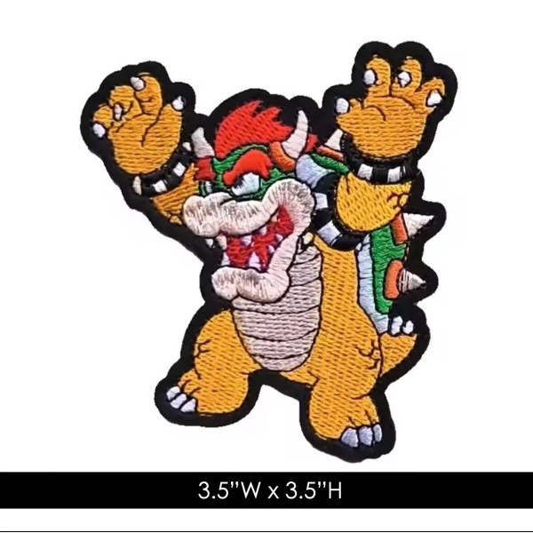 Mario Bros: Bowser Embroidered Iron On Patch (Left). Measures: 3.5"W x 3.5"H