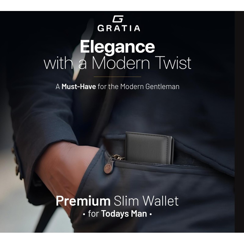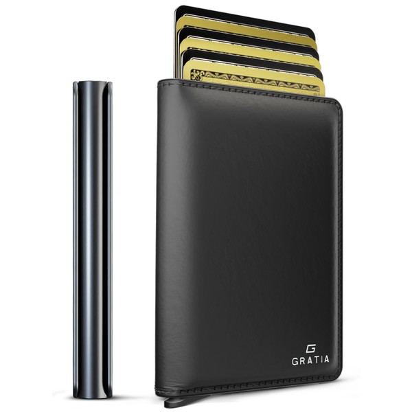 GRATIA Slim Wallet for Men - RFID Blocking, Minimalist Men Wallet with Card Holder, Stylish Men Wallet for Security & Convenience, Front & Back Pocket Wallet, Holds 8 Cards & Cash (Black)