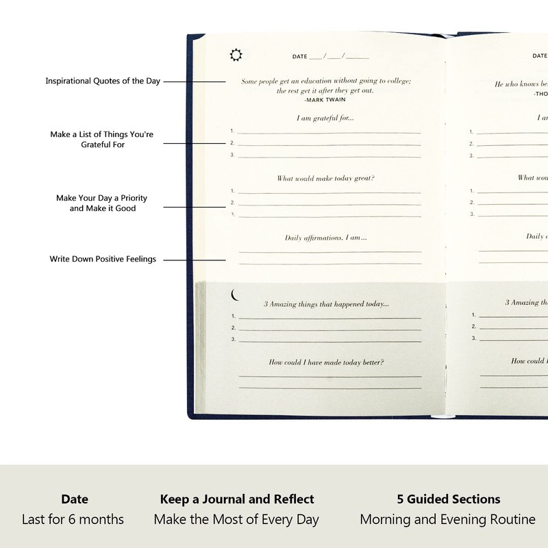 - Build a Better Habit - A chic daily journal with prompts starts your day with appreciation and ends it with deep reflection. This positive journal has enough pages for 6 months.