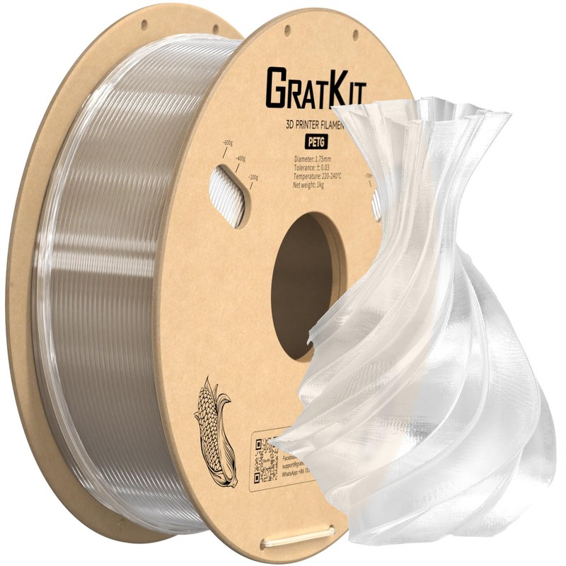 GratKit PETG 3D Printer Filament 1KG, PETG Filament 1.75mm, 3D Printing Filament PETG Transparent