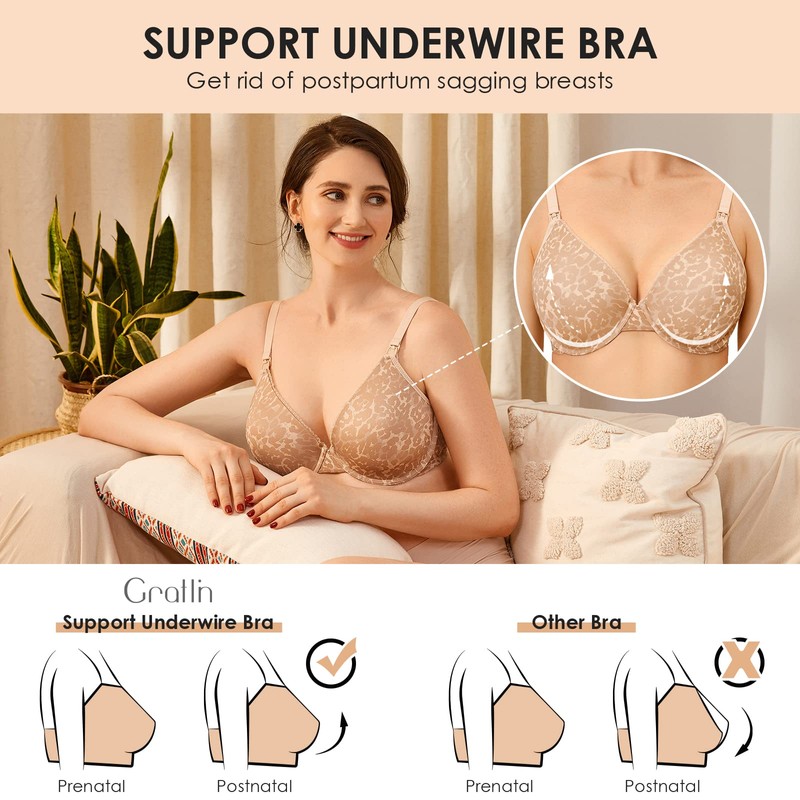 Gratlin Women's Full-Cup Maternity Bra, Preformed Cups, Underwired Nursing Br...