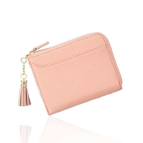 Grav Women's Wallet, Mini Wallet, Half Size (Genuine Leather Fits in Your Hand) (Compact, Yet Large Capacity), L-Shaped Zipper, Skimming, Scratch-Resistant, Grain Leather, Won't Break Bills, Compact