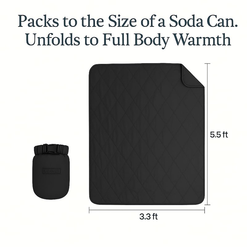 - Hands-Free Snaps: Need extra warmth while moving around? This packable blanket features snap buttons that secure around your neck, allowing hands-free comfort. Use it as a wrap, poncho, or insulated seat cover during hikes or road trips.