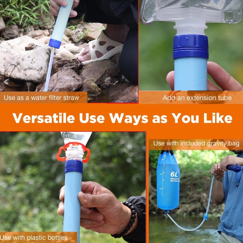 Gravity-Fed Water Bag 6L Survival Water Filter Straw w/4xWater Pouches,Emerge