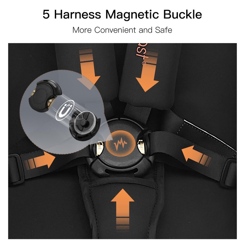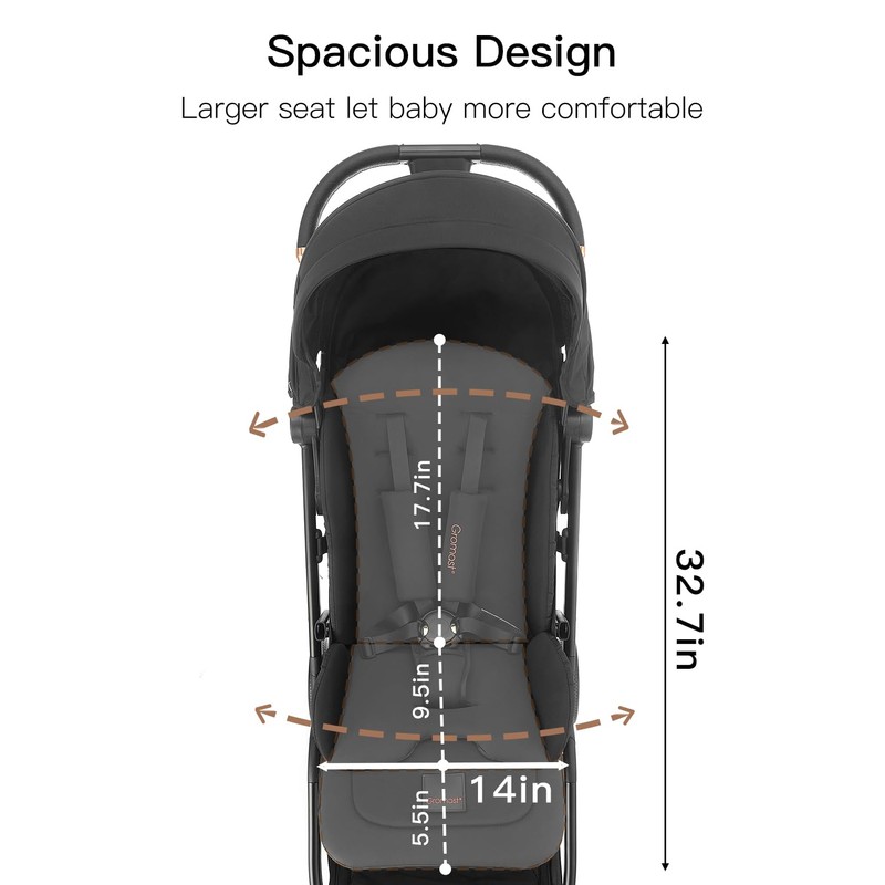 Gromast Gravity Folding Baby Stroller - Portable Travel Toddler Stroller w/Adjustable Backrest & Canopy, Lightweight and UV Protected, One-Hand Automatic Folding - Black
