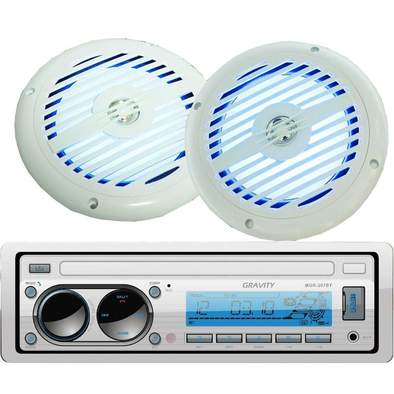Gravity MGR-207BT 200W A2DP True Marine Stereo AM FM Radio Media Player Receiver with Bluetooth and 350 WATTS 2-Way Coaxial Marine Audio Speakers 6-1/2" Bundle