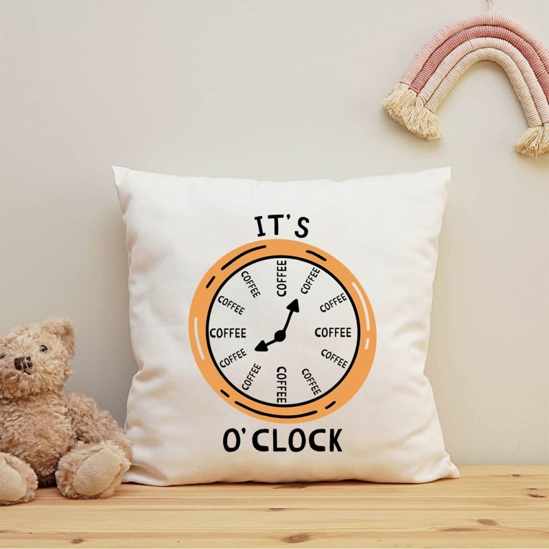 GRAVURZEILE Cushion with Motif - It's Coffee o´clock - Funny Gift for Coffee Lovers - Funny Gift for Him and Her for Birthday Christmas - Size with Filling