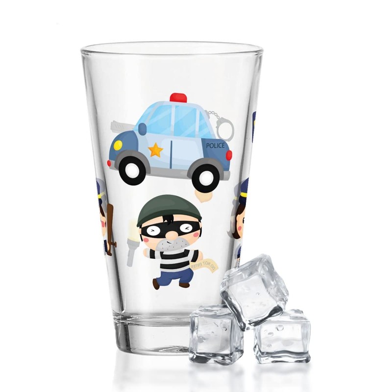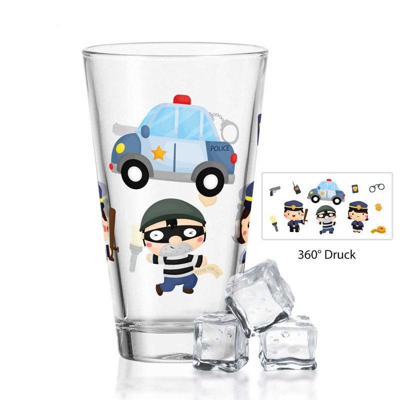 GRAVURZEILE Leonardo Water Glass with UV Print - Police 360° Design - as a Gift for Children for Children's Birthday Christmas - Suitable for Everyday Use - Suitable as Drinking Glass