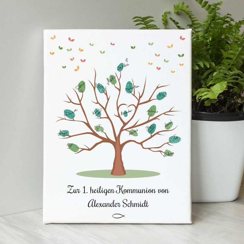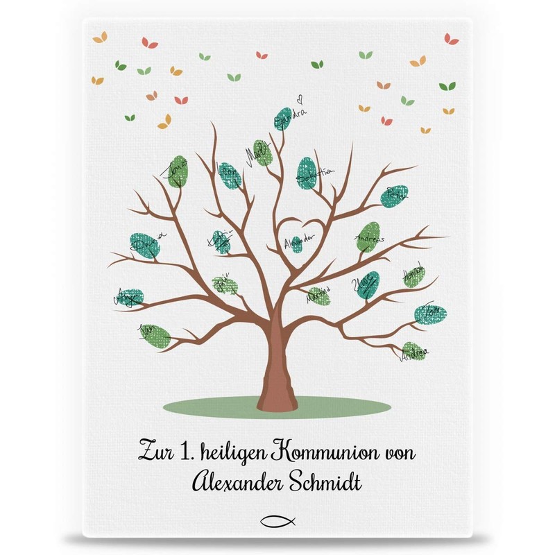 GRAVURZEILE Personalised Canvas for Communion as Guest Book - Guest Fingerprint - Size 30 x 40 cm - Space for 70 Fingerprints - Great Gift Idea for Girls and Boys