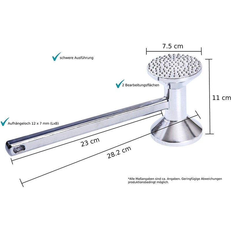 Stainless Steel Meat Tenderiser, however, have the advantage that they can be done in the dishwasher, on the wavelength are likely to come easier (approx. 400 – 500 Grams) and have smaller working areas. Head and handle are also in the stainless steel version along welded.