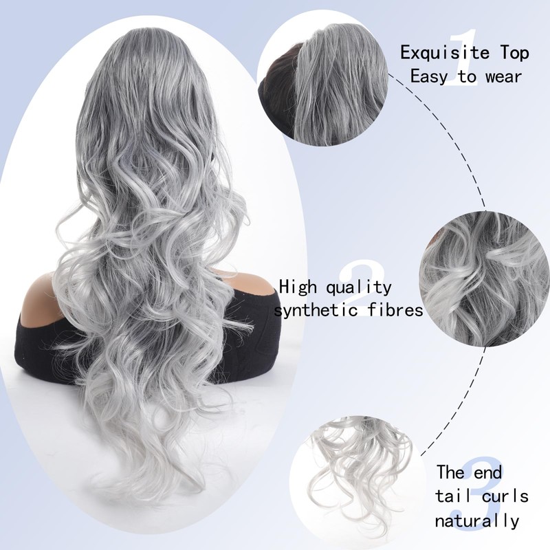 - Long Gray Layered Drawstring Ponytail:22 inch long wavy curly drawstring ponytail for black women crafted from Premium Synthetic Fiber Hair, which makes the hair strands lightweight, soft, and also fluffy effect. Which are used to add thickness and length.