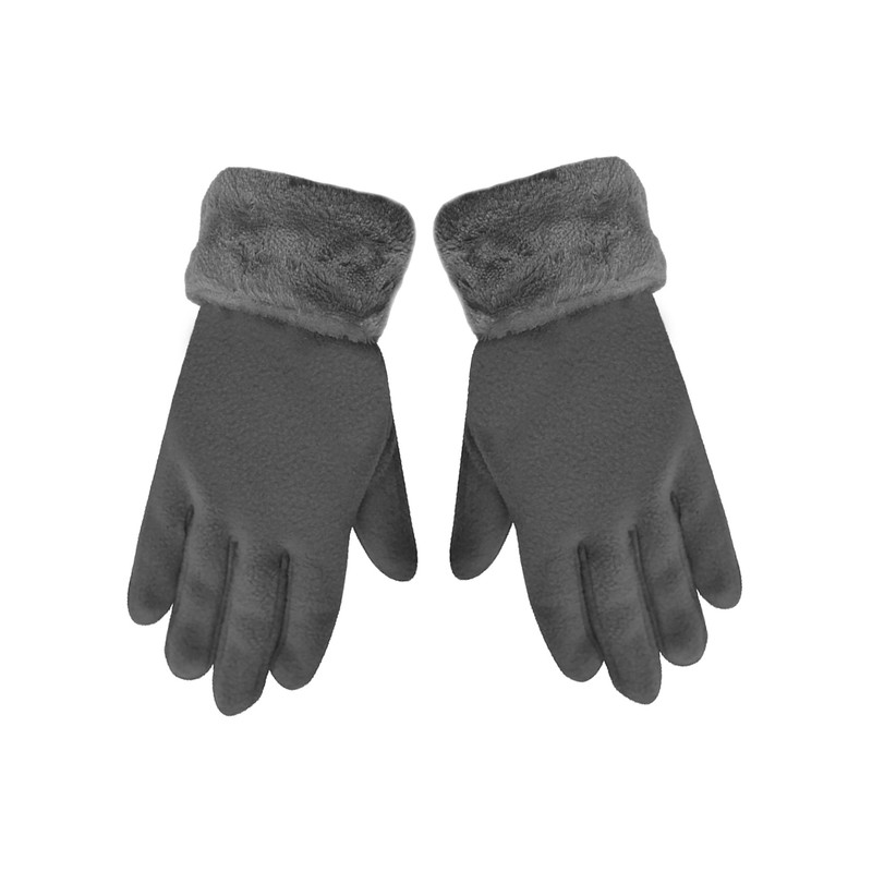 Gray Plush Fur Trim Fleece 3 Piece Hat Scarf & Glove Set