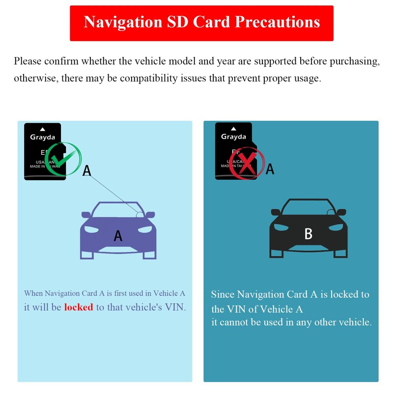 - **Intelligent VIN Locking**Upon first use, the navigation card automatically binds to your vehicle's VIN, preventing unauthorized use or installation in other vehicles, and ensuring the security of your navigation data at all times.