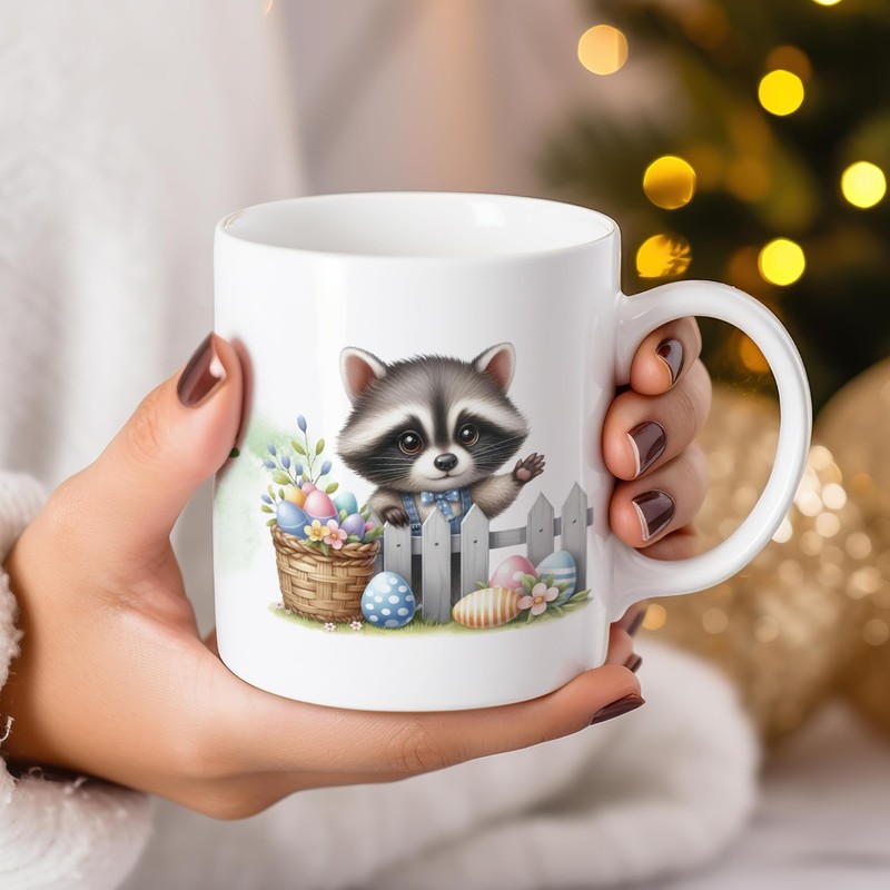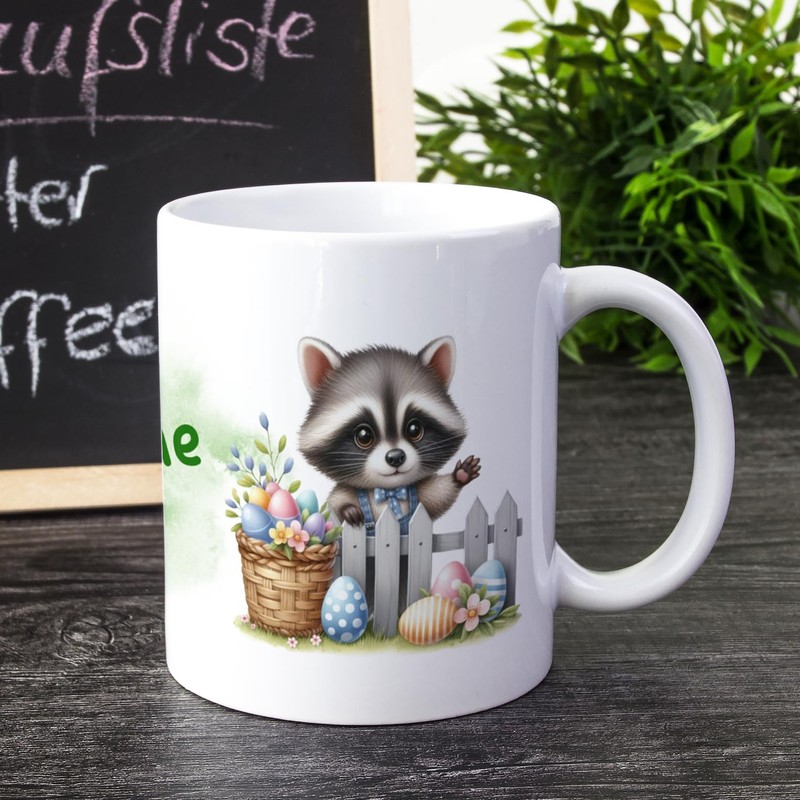 GRAZDesign Personalisierte Ostertasse mit Name und Waschbär, Geschenk Ostern für Jungen und Mädchen, Kindertasse Keramik 330ml