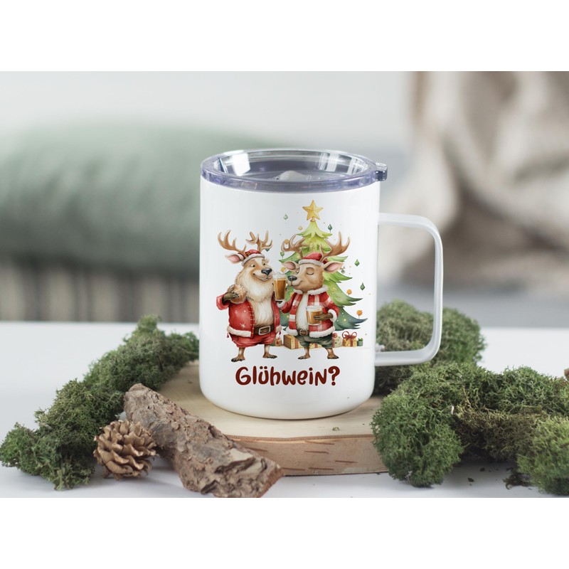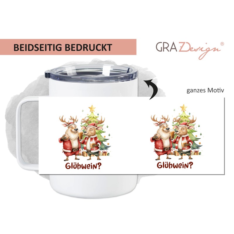GRAZDesign Thermobecher Weihnachten, Glühweinbecher als Geschenk zu Weihnachten, Lustiges Motiv mit Elchen, Edelstahl 350ml