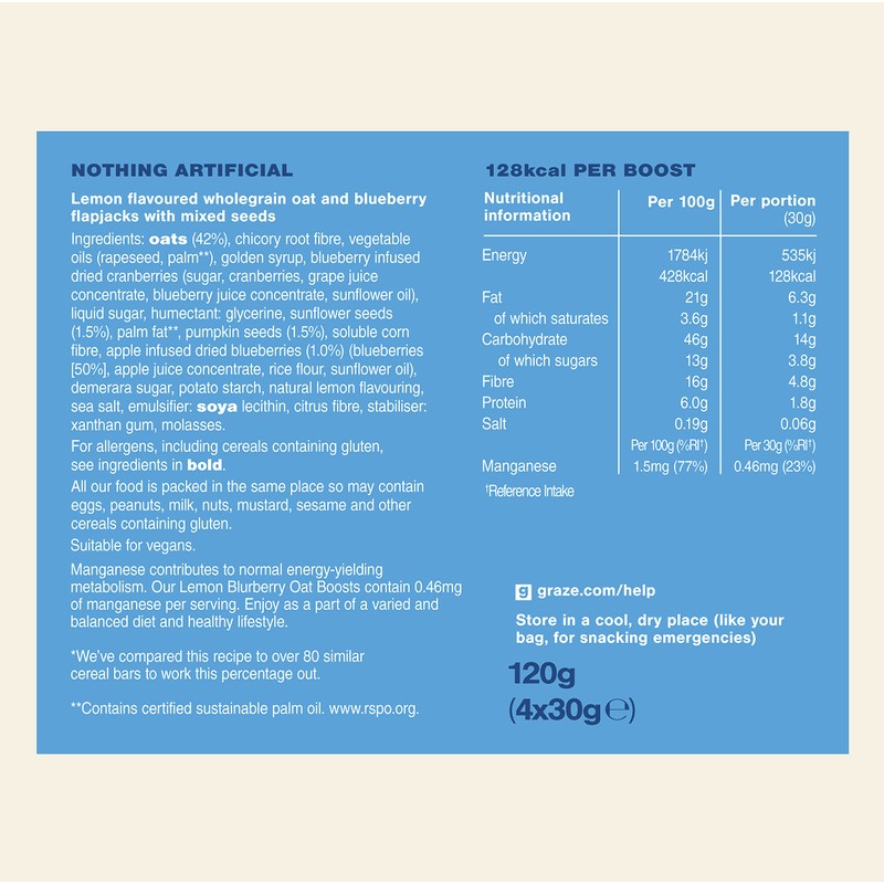 Graze Lemon And Blueberry Superfood Oat Square Bites With Baobab 4x30g 120g