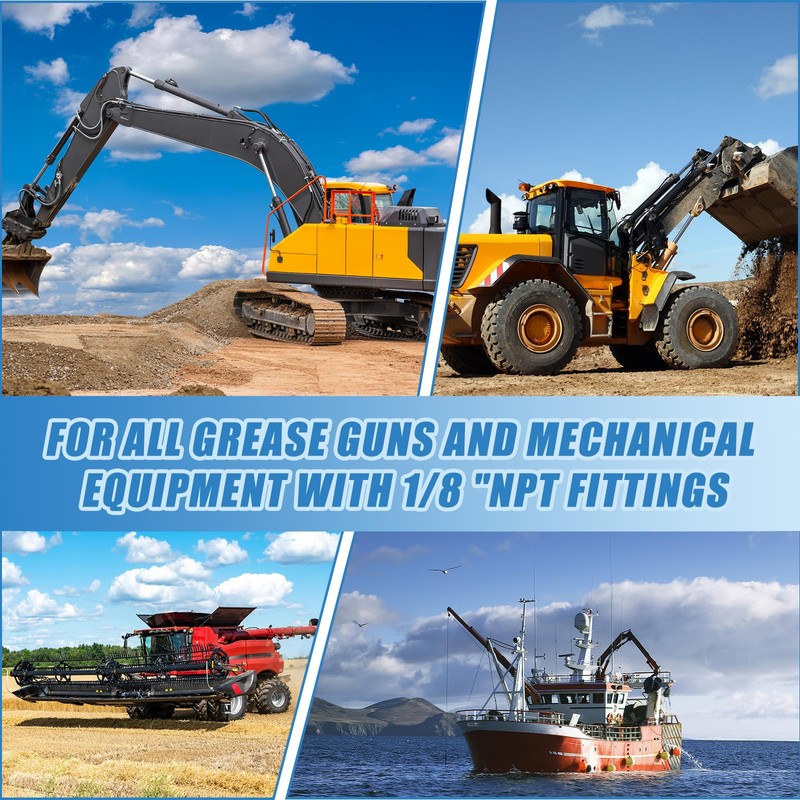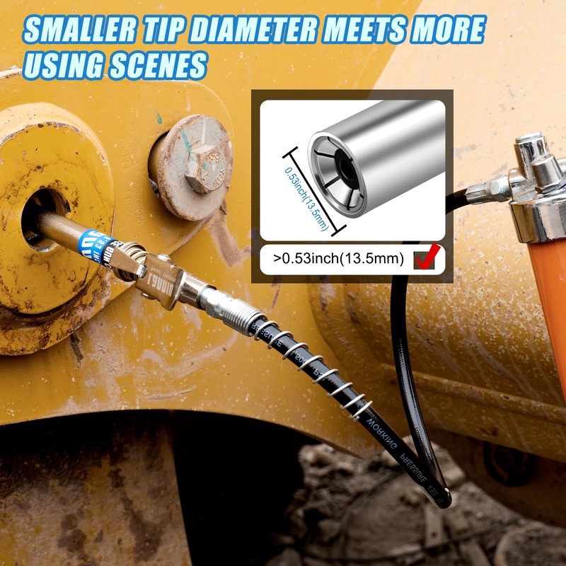 LANNIU Grease Gun Coupler, Strong Lock & Extra Reach Grease Coupler, Heavy Duty 12000 PSI Quick Release Grease Gun Tips, Compatible with All Grease Guns 1/8" NPT Fittings