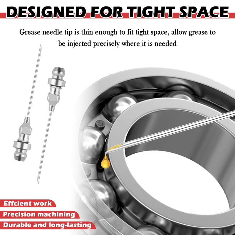 • Designed for Tight Space: Grease needle tip is thin enough to fit tight space, allow grease to be injected precisely where it is needed, even in tight spaces, grease needle elbow nozzle can also be another angle to lubricate hard-to-reach areas easily