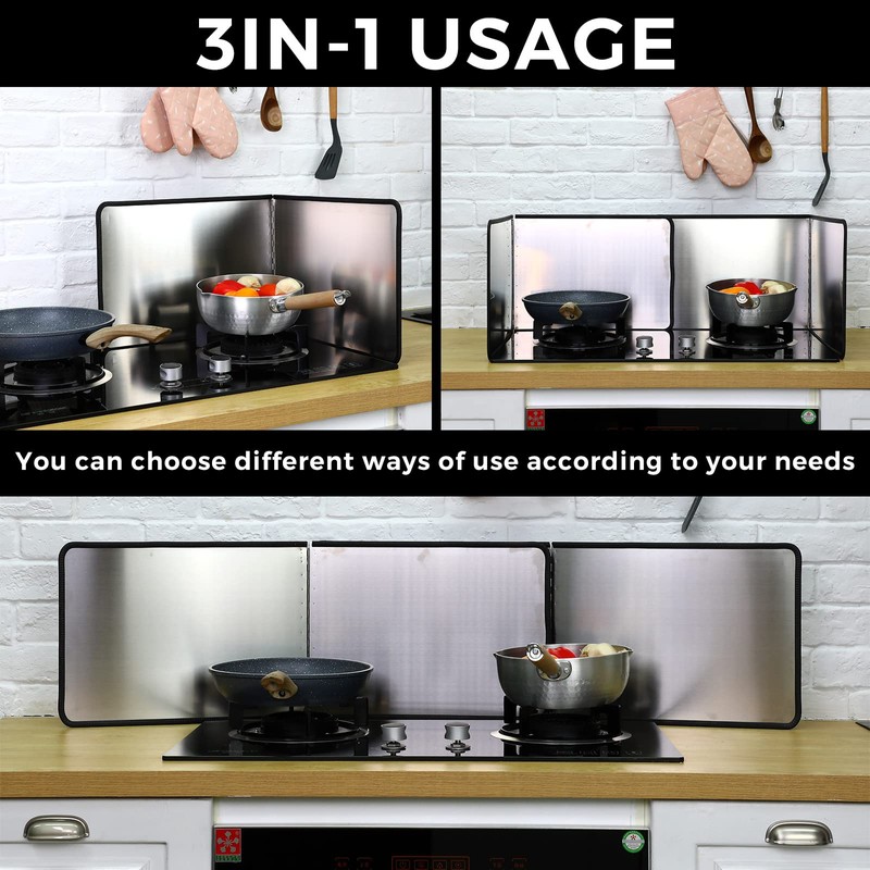 - Long time usage: our stove wrap splatter guards are made of quality 304 stainless steel; The metal panels can withstand heavy cooking and high temperatures, corrosion and rust resistant, can serve you for a long time.There will be a protective film when you receive the goods, you can use it after tearing it off