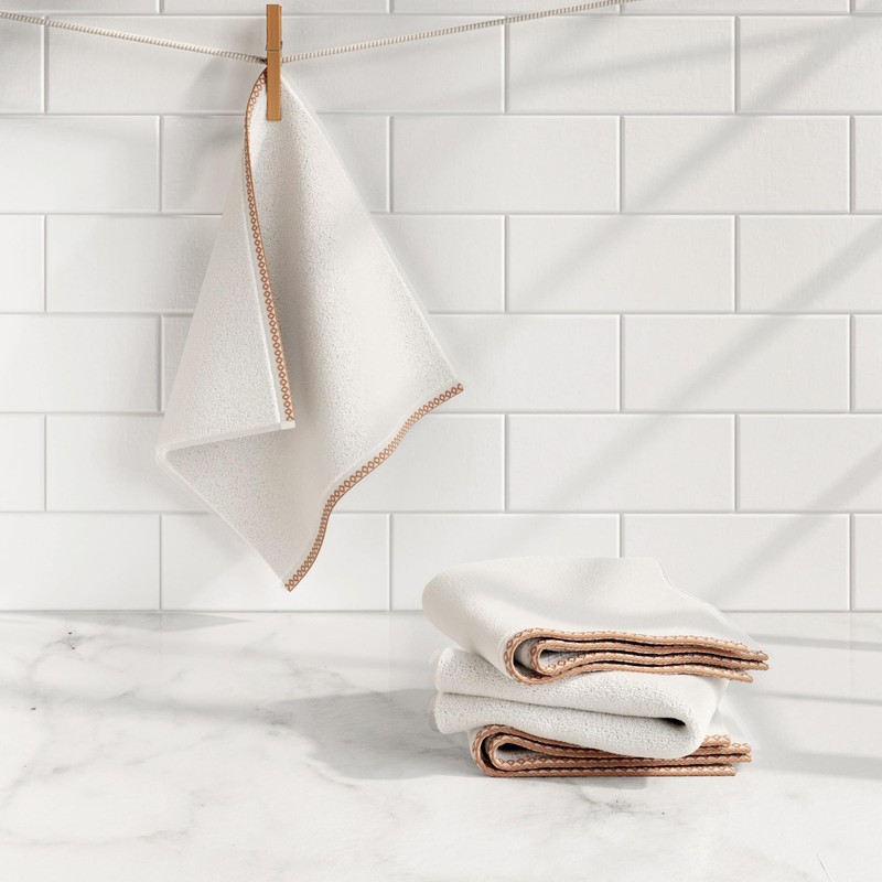 Great Bay Home Clay/White Washcloth Set - Ultra-Soft Cotton, Boho-Chic Border Design - 12 Washcloths (13" x 13") - Absorbent, Quick-Dry, Lightweight Bathroom Towels