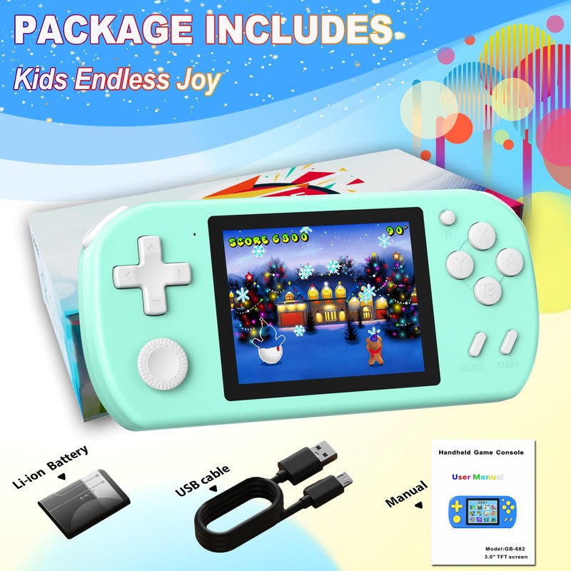 - 3.0" HD DISPLAY:Immerse yourself in vibrant and crisp visuals with the crisp, clear 3.0-inch display. Every detail will leap off the screen, enhancing children gaming experience.Keeps them entertained while their eyes are effectively protected.