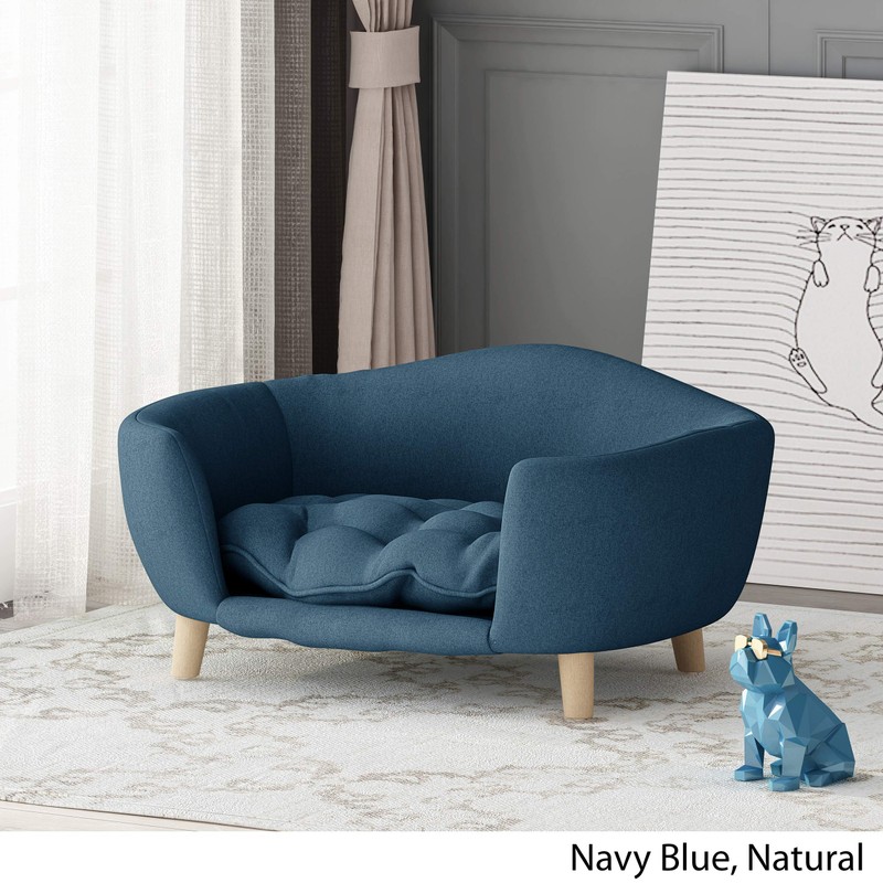 * Includes: One (1) Small Dog Bed * Material: Fabric * Fabric Composition: 100% Polyester * Leg Material: Beech Wood * Color: Navy Blue * Leg Finish: Natural * Assembly Required * Hand Crafted Details * Dimensions: 21.75 inches deep x 30.25 inches wide x 14.00 inches high * Seat Dimensions: 18.25 inches deep x 24.00 inches wide x 8.25 inches high