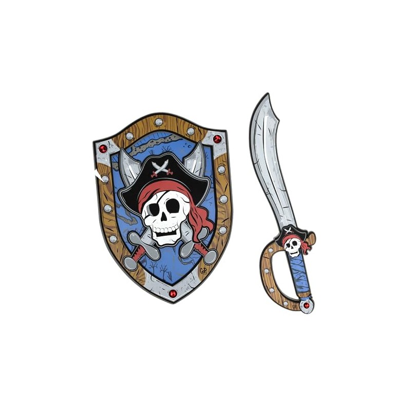 Great Pretenders Blue Pirate Sword and Shield Set, Toy Sword & Shield for Kids, Pretend Play Foam Sword and Shield Set in Foam for Children
