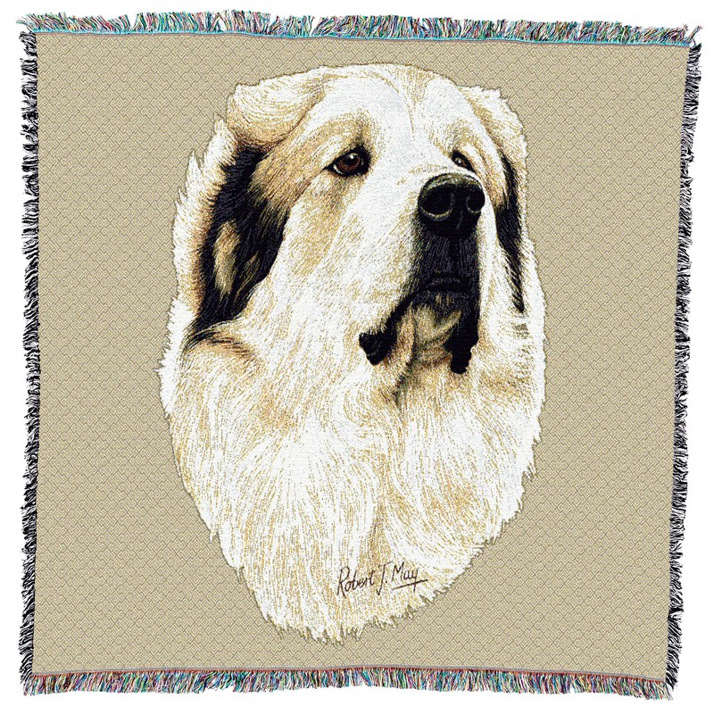 Great Pyrenees - Robert May - Lap Square Blanket Throw Woven from Cotton - Made in The USA (54x54)