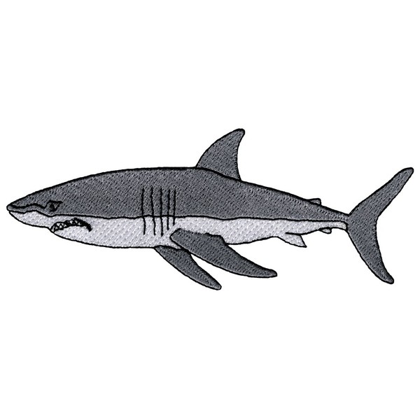 Great White Shark Embroidered Patch Jaws Iron-On Applique Ocean Fish