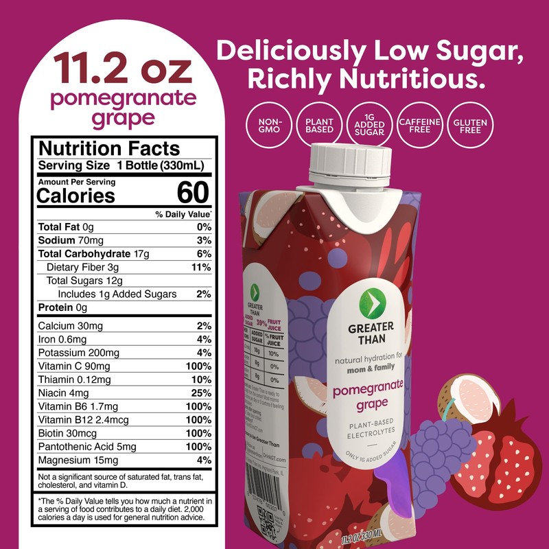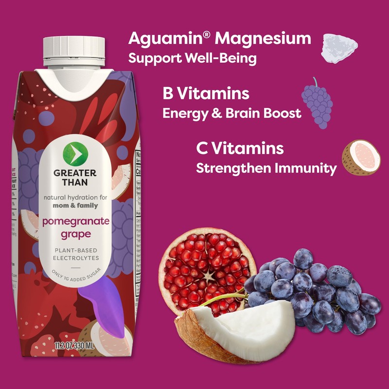 Greater Than Lactation Supplement Support, Coconut Water, Vitamins & Electrolyte Drink for Breastfeeding & Immune Support, Lactation Cookies Alt, Gluten Free, Low Sugar, 24 Pack, Pomegranate Grape