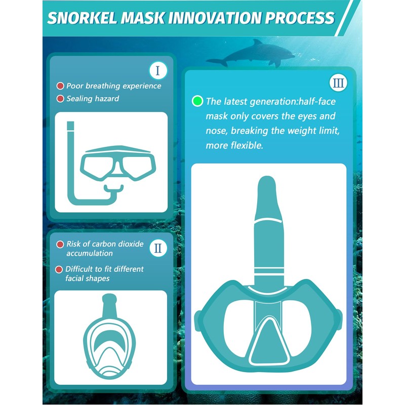 - Panoramic 180° Visibility: Experience breathtaking underwater views with our innovative half-face diving mask, designed to enhance your snorkeling and swimming adventures.