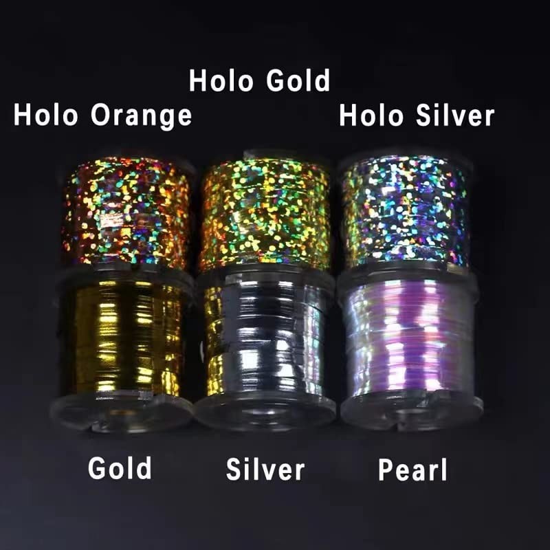 Suitable for small spooled tinsel tape for fly tying streamers etc.. flies, Body wrap decorative tape commonly used in wet hooks and traditional hair hooks, metallic luster.