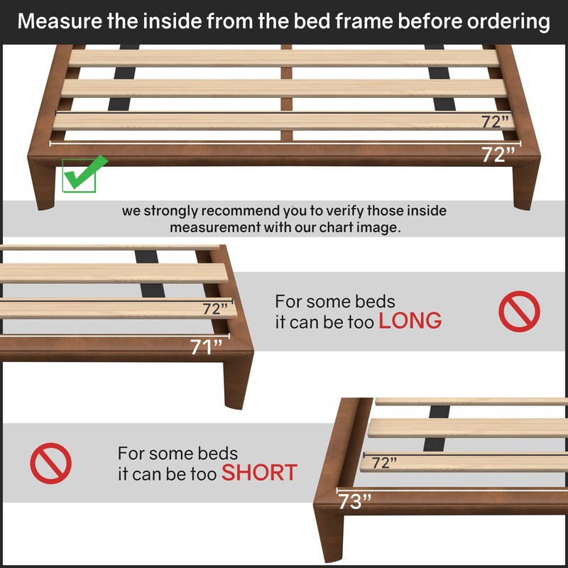 - PLEASE MEASURE BEFORE ORDERING: it's important to measure the width of your bed to ensure a proper fit. These slats are designed to fit standard size beds, but it's always a good idea to double-check before ordering to avoid any issues.